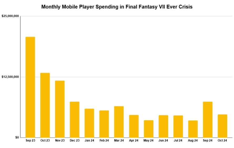 Ever Crisis’ launch month was its most successful so far, having generated almost $20.8 million in September 2023, with limited-time weapons for Cloud and Barret as initial highlights. These signature items were only available in a featured banner during the game’s first week.
